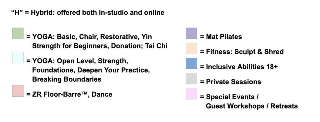 Scroll down to register. Schedule subject to change. Please sign up online at least one hour before class to confirm attendance numbers. (Text: (516) 880-3924 with any last minute changes.) Studio opens 10 minutes prior to class time. Thank you.