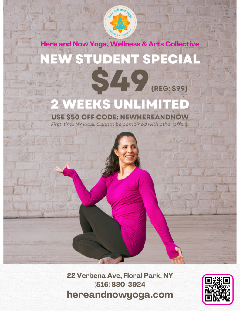 Here and Now Yoga, Wellness & Arts Collective, LLC, located in Floral Park, NY was established in 2023 by Michelle Ingkavet Cavanagh and Dina Denis-Paolucci. Our collective traces its roots back to the original Here and Now Yoga, founded by Michelle in 2010. United by a shared vision, we are committed to expanding the reach of yoga by providing a welcoming space for our community to gather, practice, learn, and grow together.