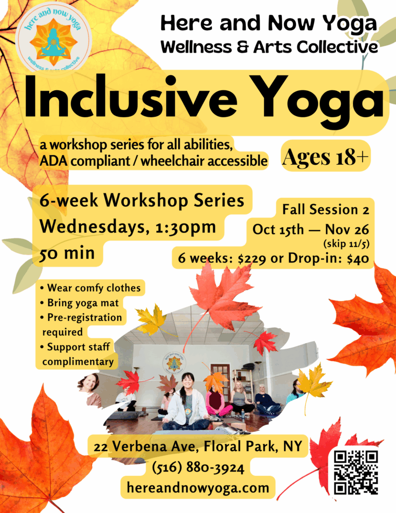 Inclusive YOGA (ages 18+) ~ Wednesdays, 1:30pm ~ Fall 2 Session: Oct 15-Nov 2 (skip 11/5) with Michelle Cavanagh