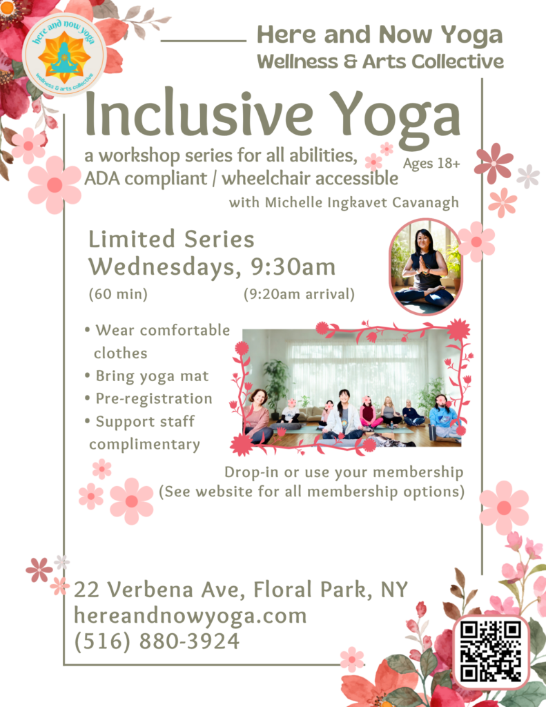 Inclusive YOGA (ages 18+) Winter II – 2026 ~ Wednesdays 9:30am (please arrive by 9:20am) with Michelle Ingkavet Cavanagh
